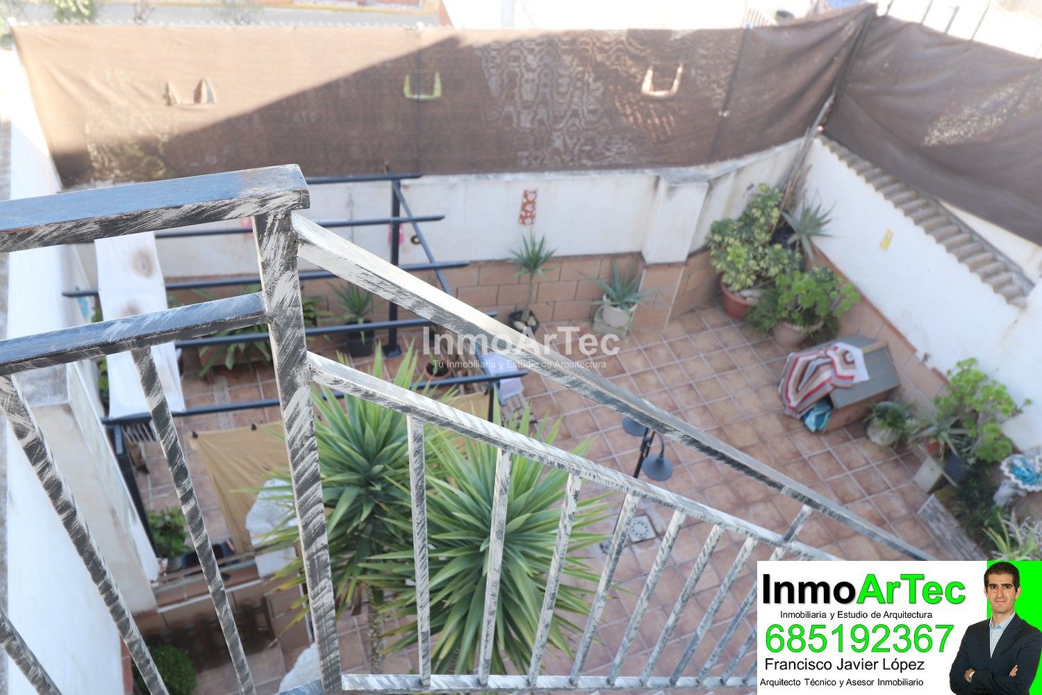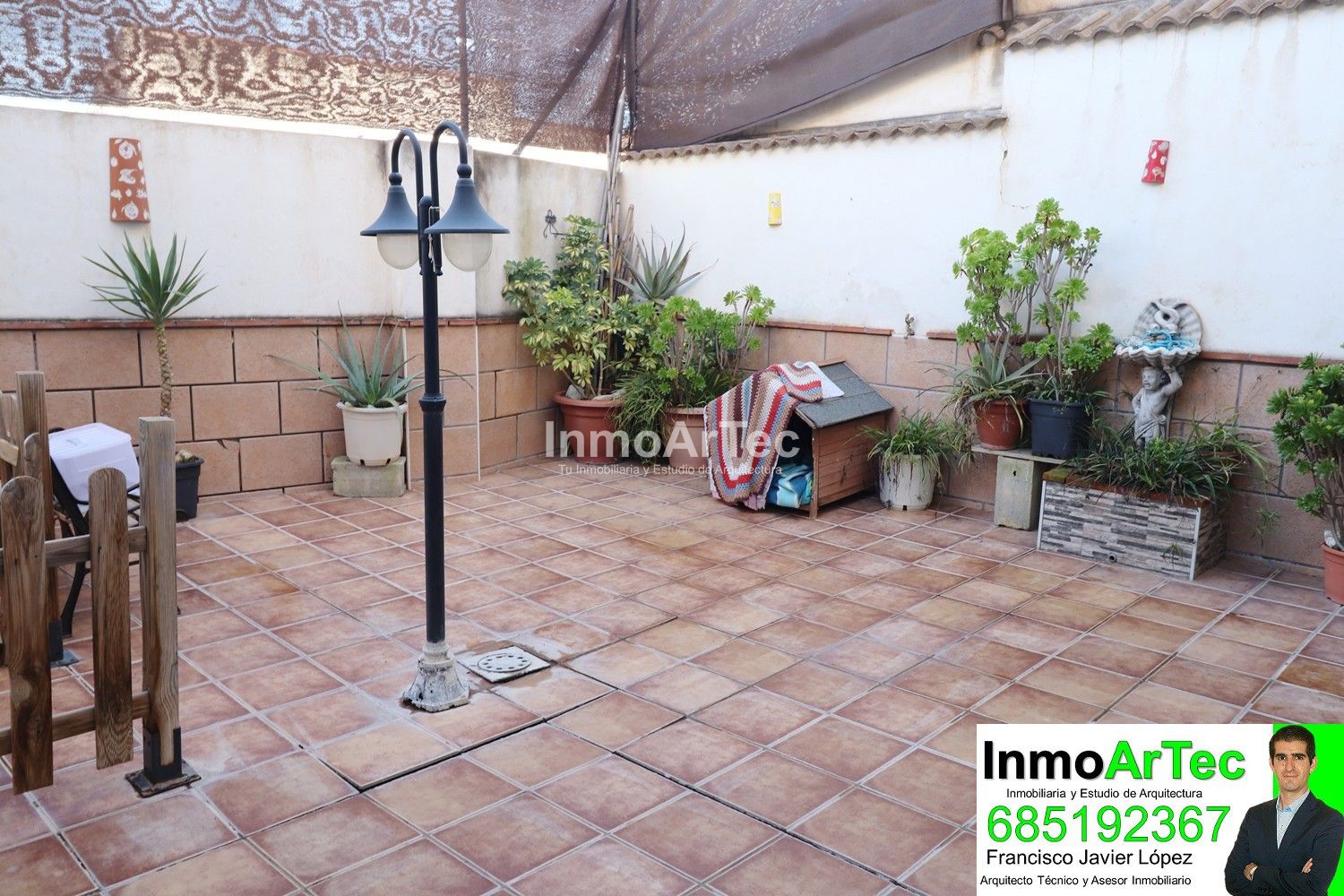 Bajando las escaleras llegamos a un gran patio solado, perfecto para disfrutar con amigos y familiares. Hacer barbacoas, o poner una piscina para los peques o no tan peques. Aquí también, aprovechando unos sótanos de la casa tenemos una zona de lavadero y almacenaje.