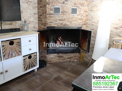 Una casa muy cómoda, porque casi todo lo principal y necesario esta en planta baja, con tres dormitorios, un baño completo con ducha a ras de suelo, cocina y salón con chimenea.
